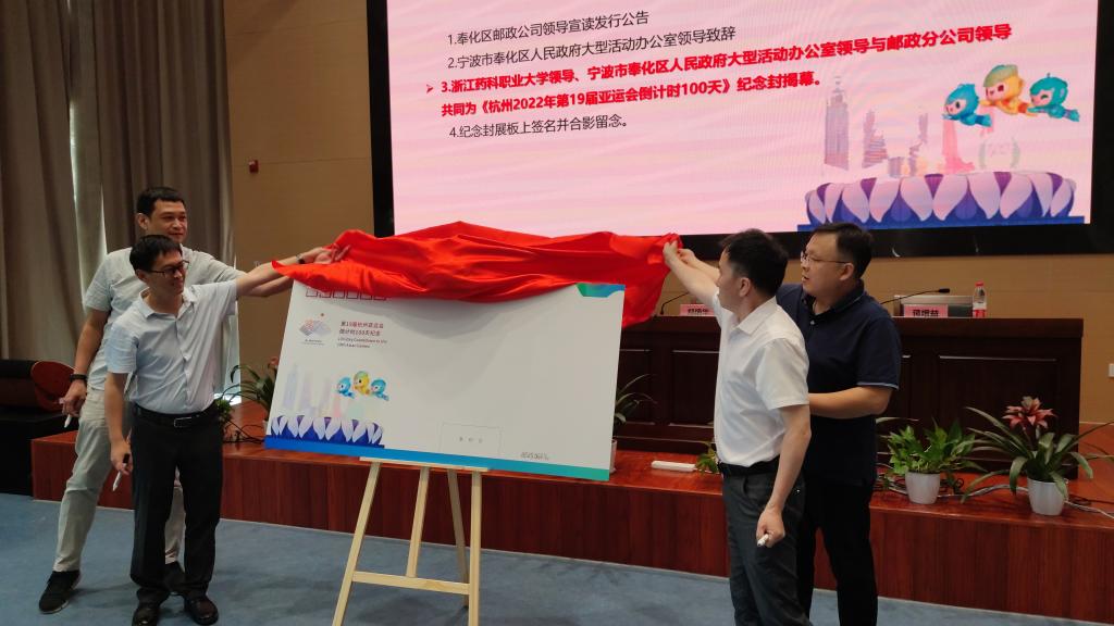 6月15日是杭州亚运会倒计时100天,当天上午,《杭州第19届亚运会倒计时100天》纪念封首发暨“心心相融@未来”亚运邮展活动在beat365正版唯一官网举行,学校师生和集邮爱好者共同为纪念封揭幕。