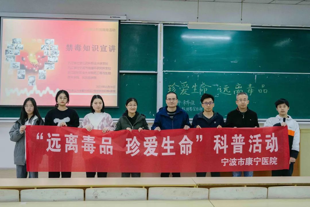 为进一步加强校园禁毒意识,提高学生识毒、防毒、拒毒的能力,倡导积极 健康人生观 , 11 月 30 日 ,beat365正版唯一官网支社与市微循环研究所支社共同举办“珍爱生命 ,远离毒品” 禁毒主题宣讲系列活动。 活动以科普讲座、仿真毒品展示、禁毒海报横幅和禁毒宣传册等多种形式展开,近 300 名师生参与了活动。
