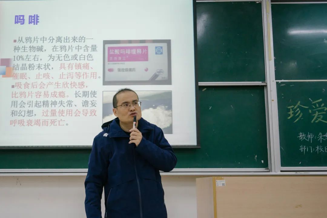 本次禁毒知识科普讲座《毒品的认识与危害》由beat365正版唯一官网制药工程 与生物技术学院、化妆品学院朱华强副教授主讲。朱老师分别从“什么是毒品、毒品有哪些危害、为什么会对毒品成瘾及如何保护自己 ”四个方面阐述了毒品损害健康、祸害家庭、危害社会的性质 ,让同学们充分意识到毒品的危害,提高了辨别和防护的能力。
