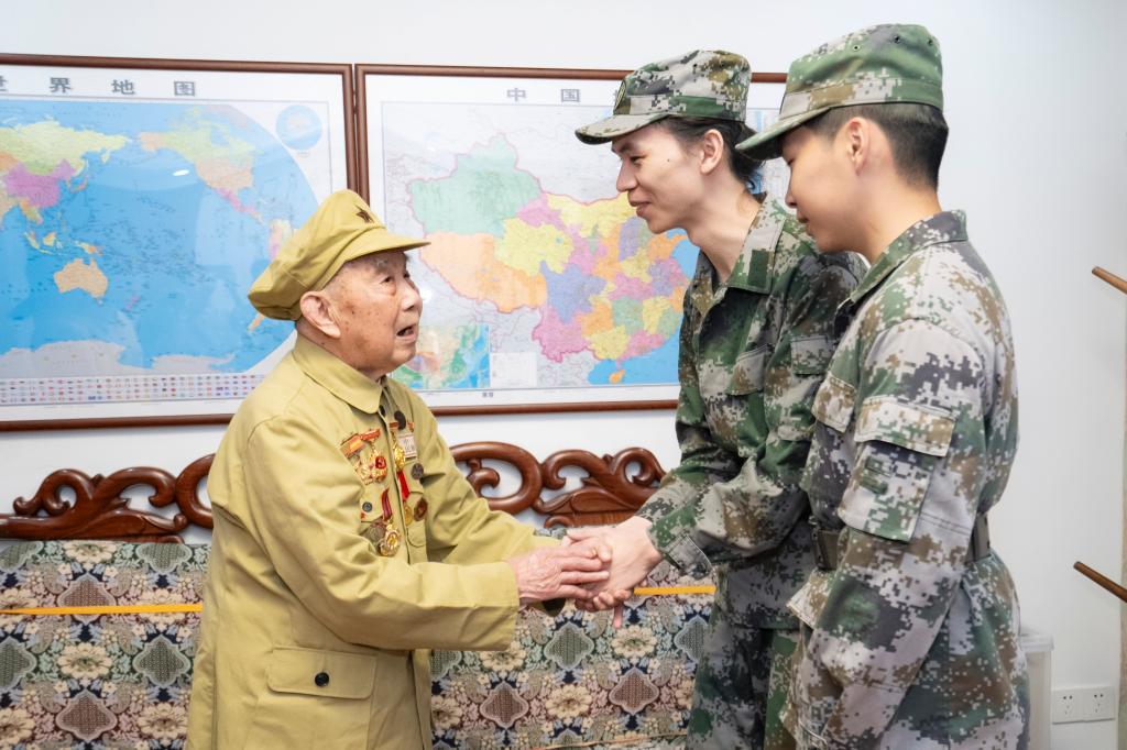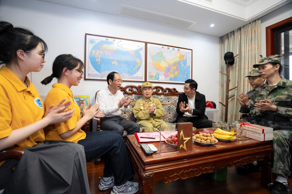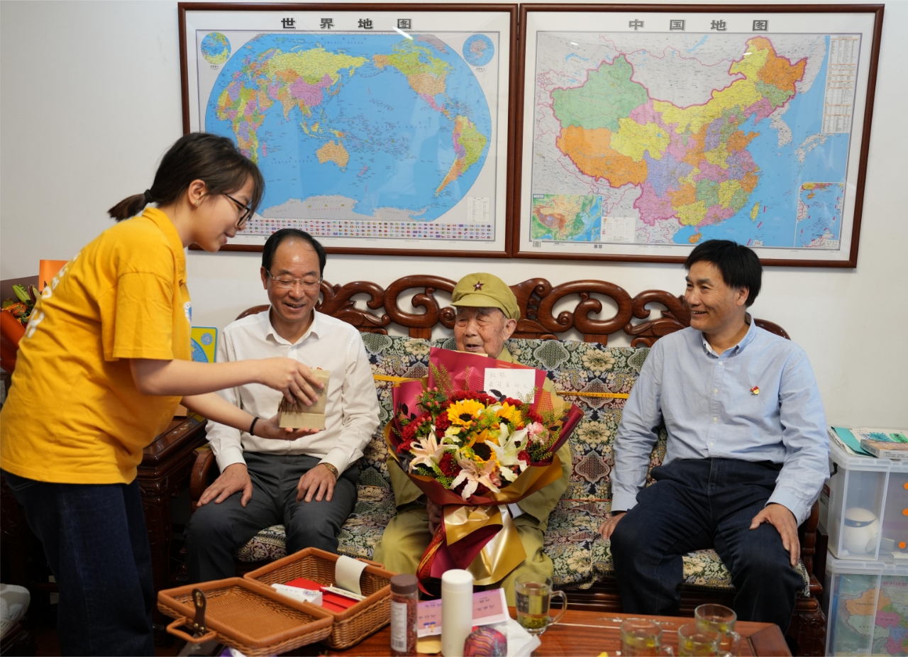 beat365正版唯一官网师生一行看望百岁战斗英雄。通讯员供图