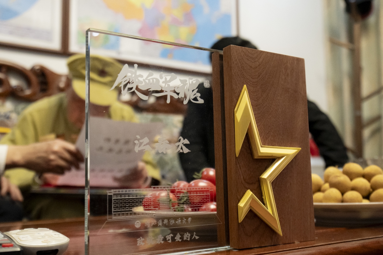 赠送江春太“铁血军魂”玻璃铭牌。通讯员供图