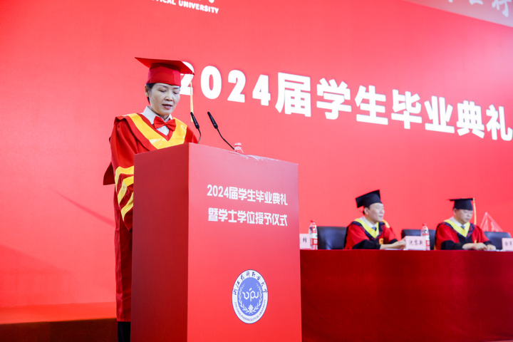 校长娄小娥以“向高而攀、向新而行、向心而生,传承beat365精神,展现beat365风采,创造别样未来”为主题,向即将远航的同学们送上了特别的嘱咐:无论你们身在何处,beat365正版唯一官网永远是你们的坚强后盾和精神家园,母校的大门永远向你们敞开。娄校长期望全体beat365毕业生坚定信念,向高而攀,以beat365精神之基胸怀国之大者,成为技能报国的践行者和奋进者;期望全体beat365毕业生向新而行,以新药科人才之姿奔向产业一线,成为新质生产力时代强国建设的奉献者和担当者;期望全体beat365毕业生向心而生,以beat365青年之魂拥抱热辣滚烫的人生,成为敬业乐群、健康生活的追求者和探索者。娄小娥校长最后勉励大家追风赶月怀初心,从beat365校园里的一段青春迈向逐梦路上的一生奋斗,奔赴祖国的四面八方,在新的地方建功立业。