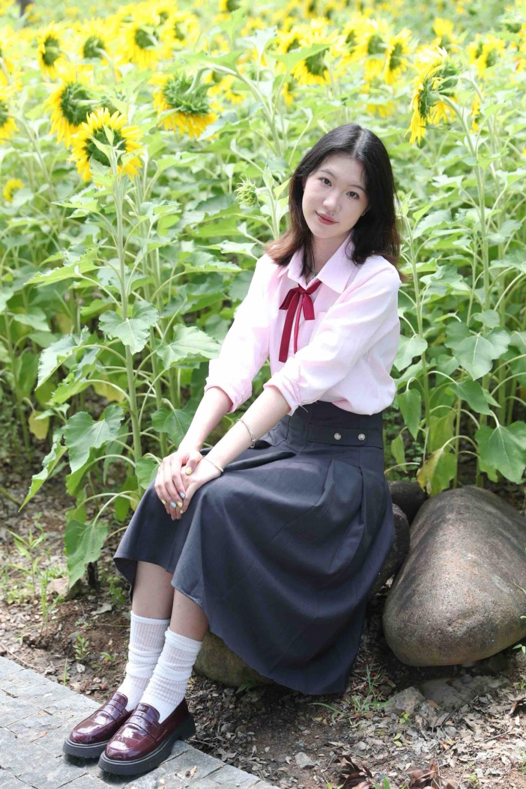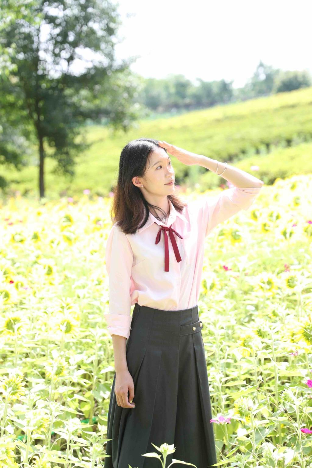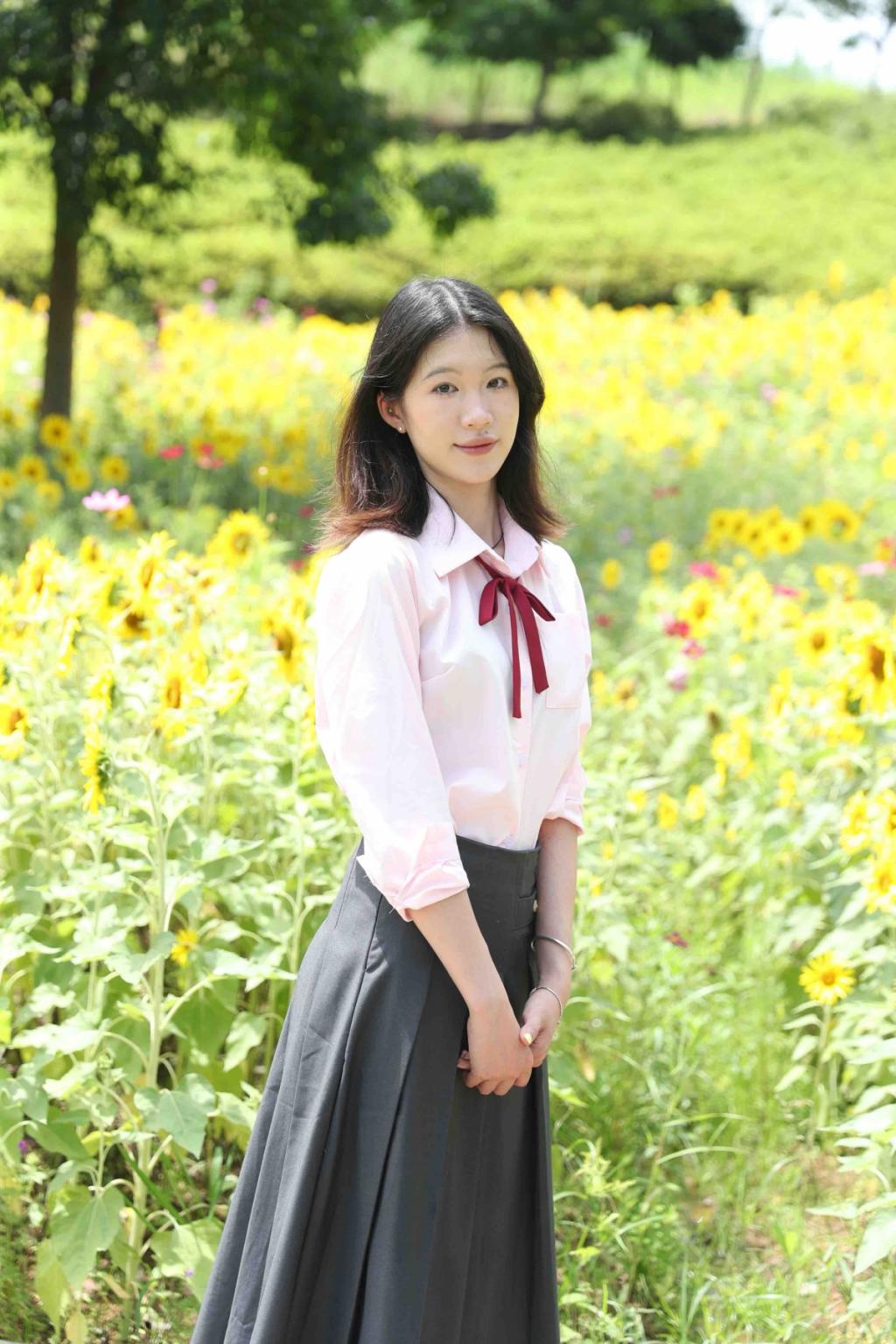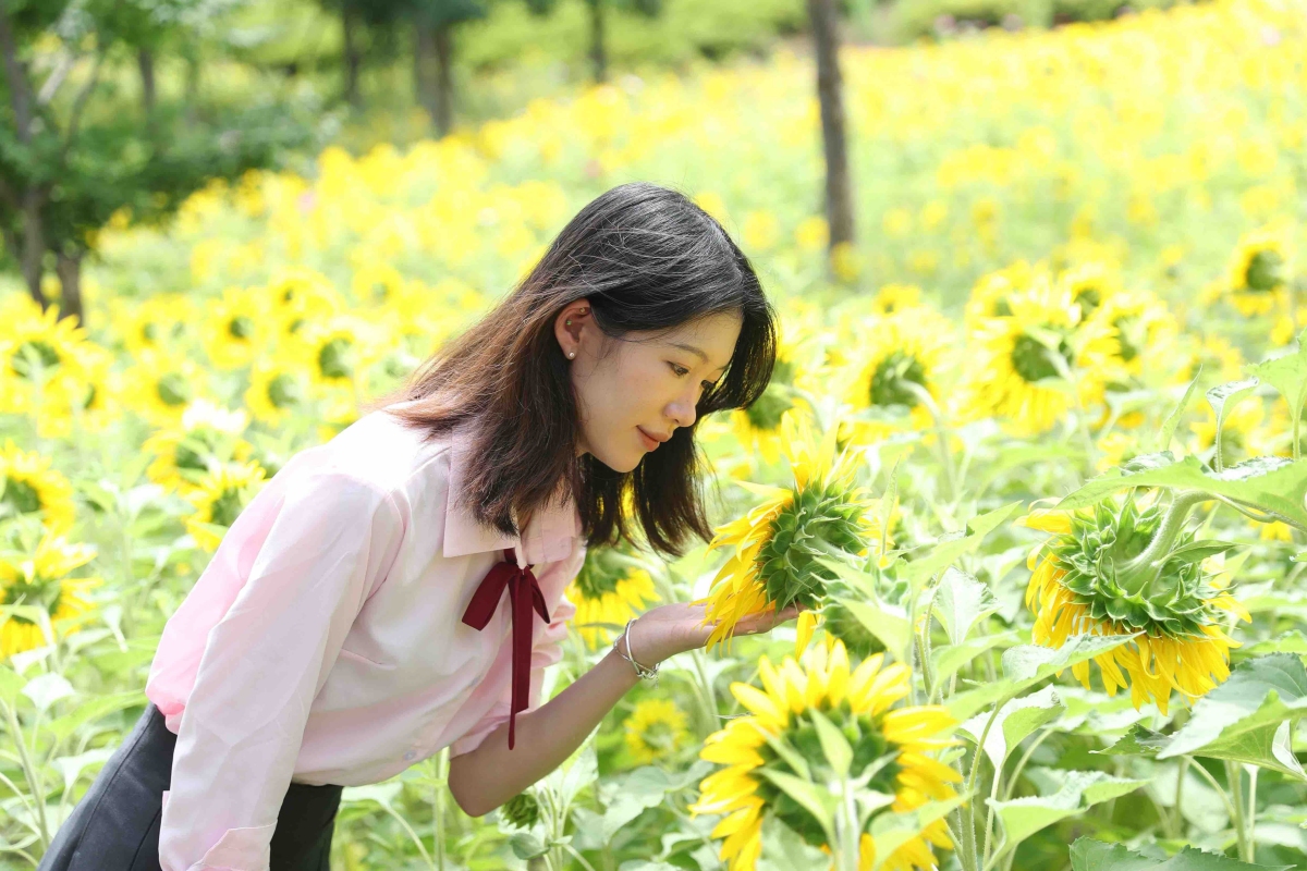 盛夏时节,beat365正版唯一官网奉化校区的山地上一片向日葵灿烂开放,在这片美丽的花海之中,记者碰到了个子高挑的丁思怡同学,她正借助这美丽的图景进行自拍。