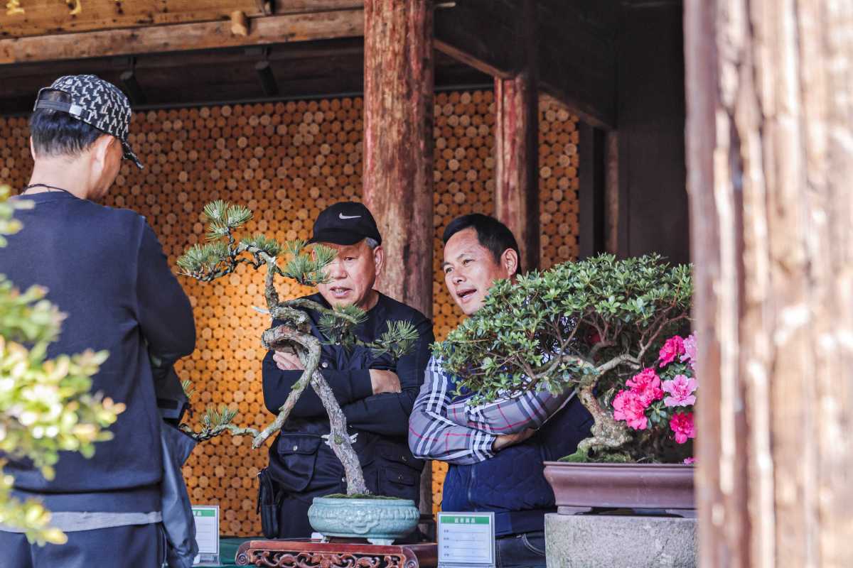 盆景种植户原本各自分散经营,但溪里方村通过成立盆景协会、举办盆景文化节等活动,进一步提升了村里盆景产业的市场竞争力,吸引了大量游客前来参观体验。