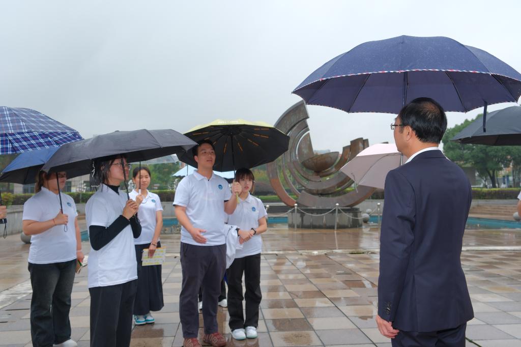 远志广场上的文化廊柱建于18年前的学校20周年校庆,上刻“勤、励,师、教,思、学,忠”等内容。陈厥祥以“学”为例向青年学子讲道: “学习是青年的首要任务,要胸怀‘国之大者’,坚守‘大学之道’,要向新而生、以质图强,尽力书写新时代大学生之‘学’”。