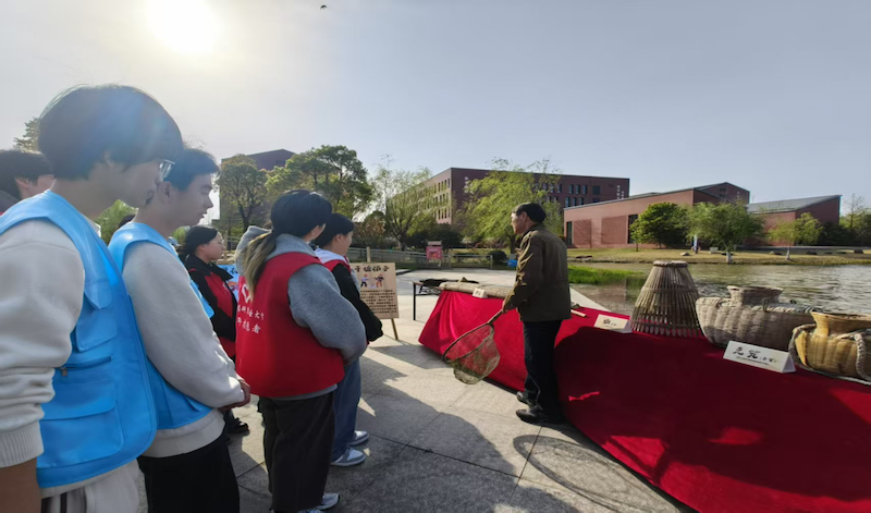 活动现场,非遗技艺传承、鱼苗放养与文化展演热闹非凡,为春日校园注入了希望与活力。文化特派员侯丽娜精心编排的《海韵山浔》展演拉开活动序幕,象山渔画与古典舞蹈交织,演绎出“人海相依”的古韵山海故事。