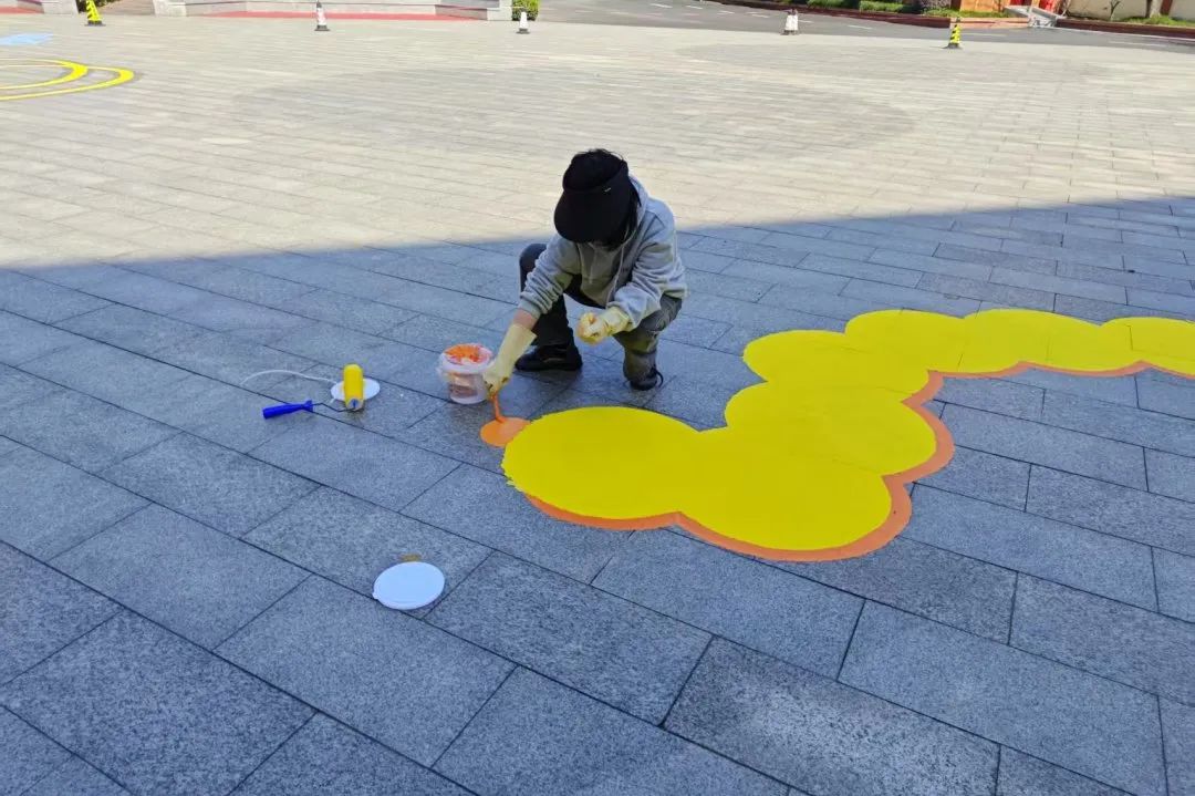 德清县高桥小学依托校园蚕桑文化,由学校教师执笔绘制桑蚕主题活力运动圈,形成“微场域”激活大小课间模式。