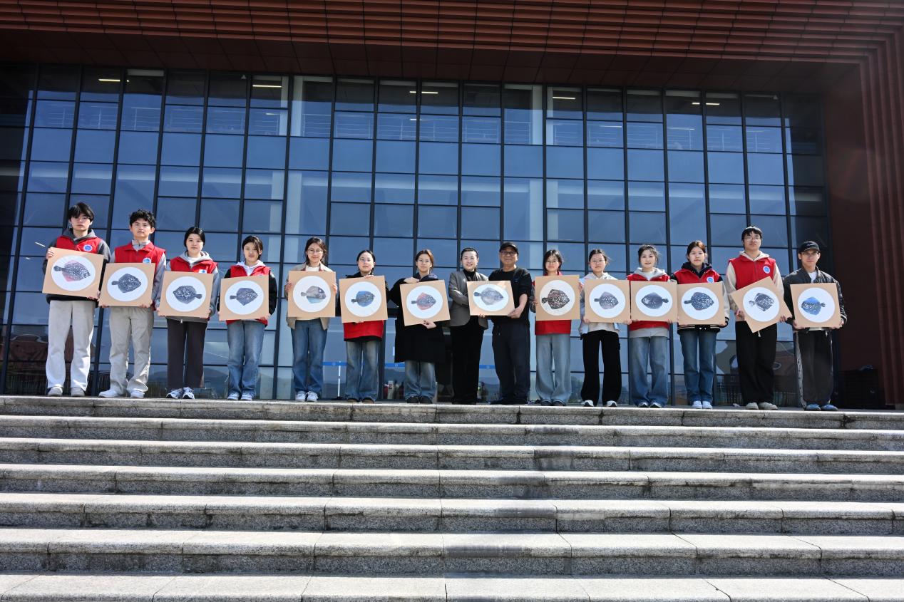 浙江省乡村工匠名师卢圣贵、象山非遗传承人何财余、鱼骨画传承人裘亚素联袂加盟,通过“鱼骨为笔,拓印为媒”主题非遗课堂,向学生传授鱼拓、鱼骨画等技艺。裘亚素表示:“鱼骨画是渔民与海洋对话的语言,我们不仅是技艺传授者,更是文化‘翻译者’。”