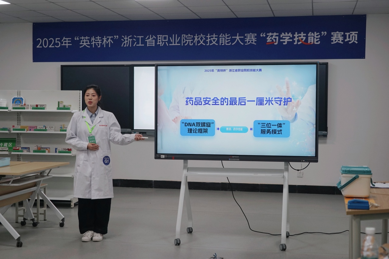 据了解,浙江省职业院校技能大赛“药学技能”赛项作为每两年举办一次的专业性赛事,不仅是对医药类职业院校学生专业能力的检验,更是为推动药学类高素质技术技能人才培养搭建平台。与往届相比,今年“药学技能”赛制全面升级,首次采用“自主命题+团队任务”模式,全方位考察学生的岗位胜任力和综合素养。