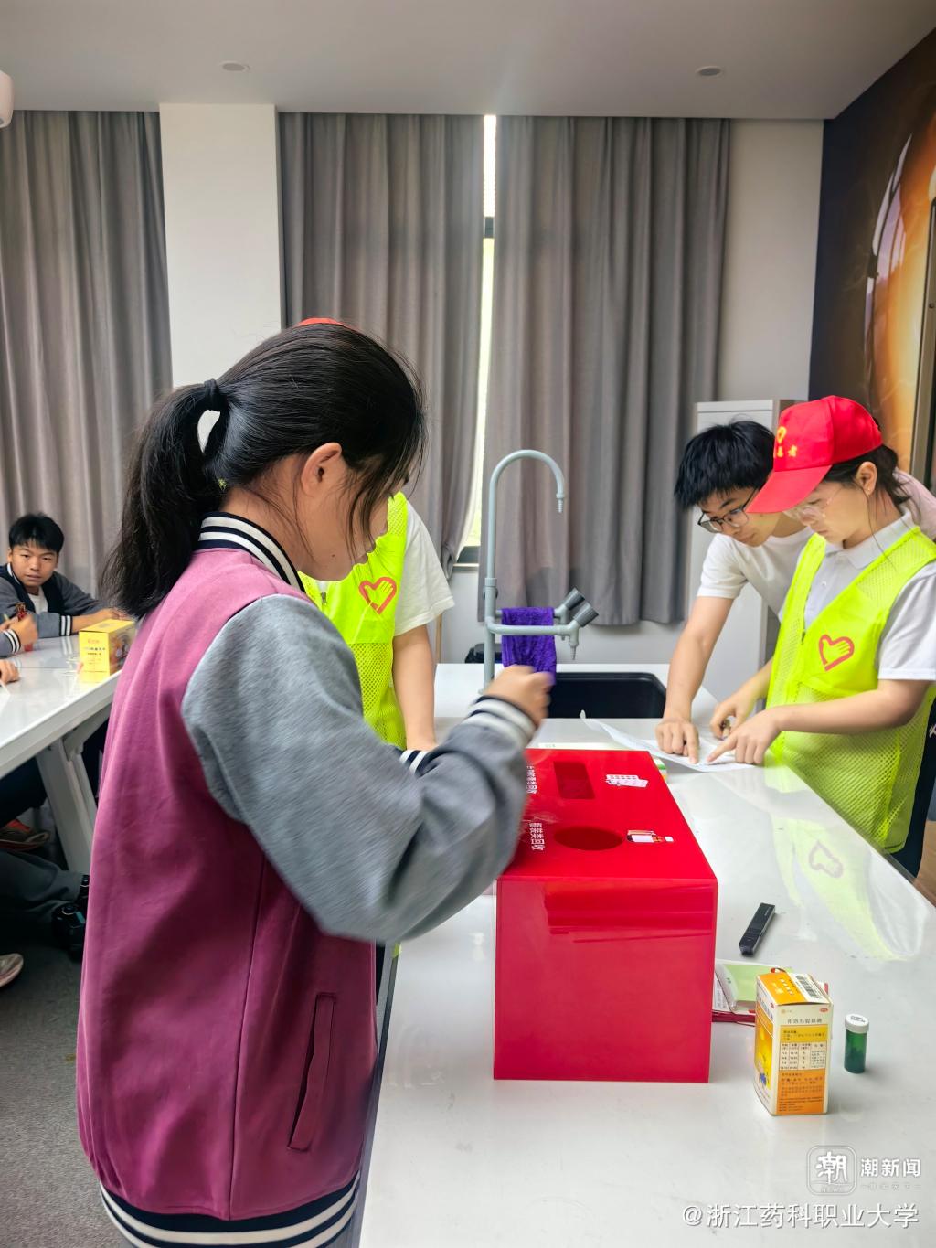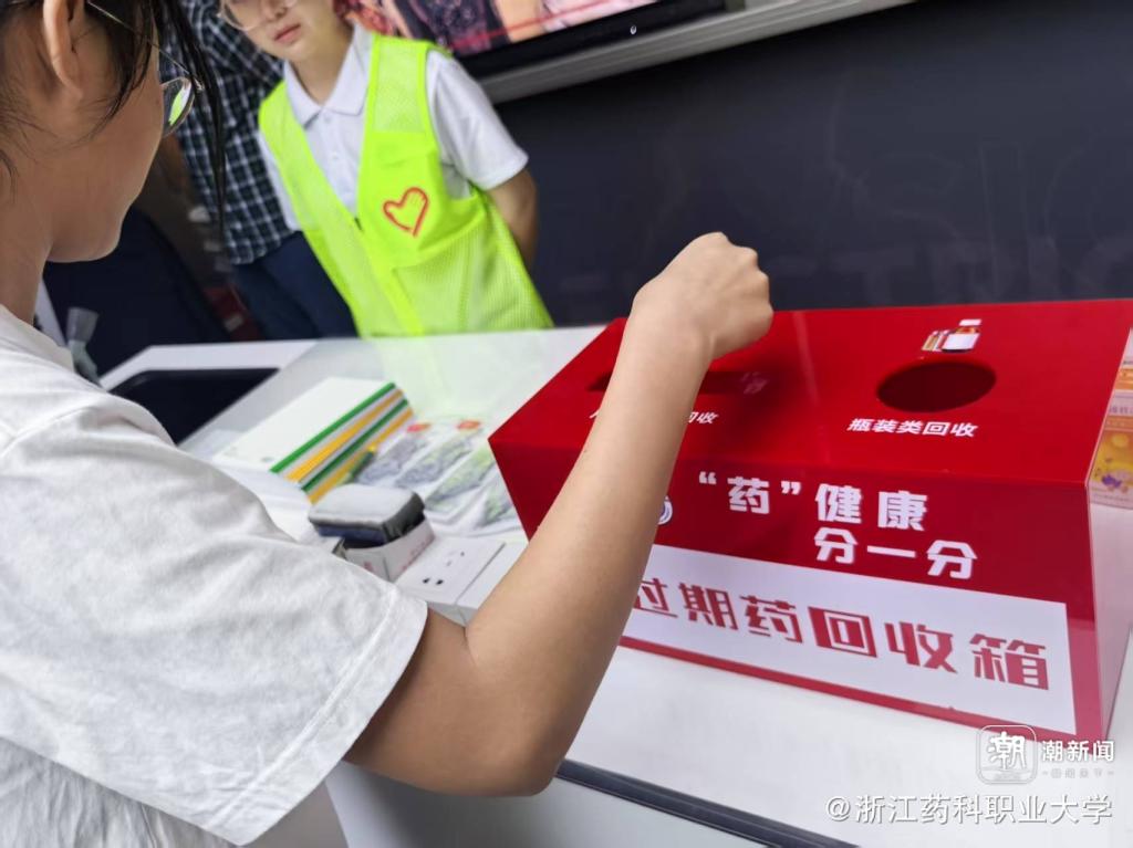 活动特别设置“过期药品回收行动”,学生凭过期药兑换绿植、文具等礼品。作为入选浙江省垃圾分类团队的“药管家”志愿服务队现场指导回收,共收集过期药品167盒。学生陈同学表示:“我用4盒过期药换到了多肉盆栽,既清理了药箱,又为环保出力,太有意义了!”