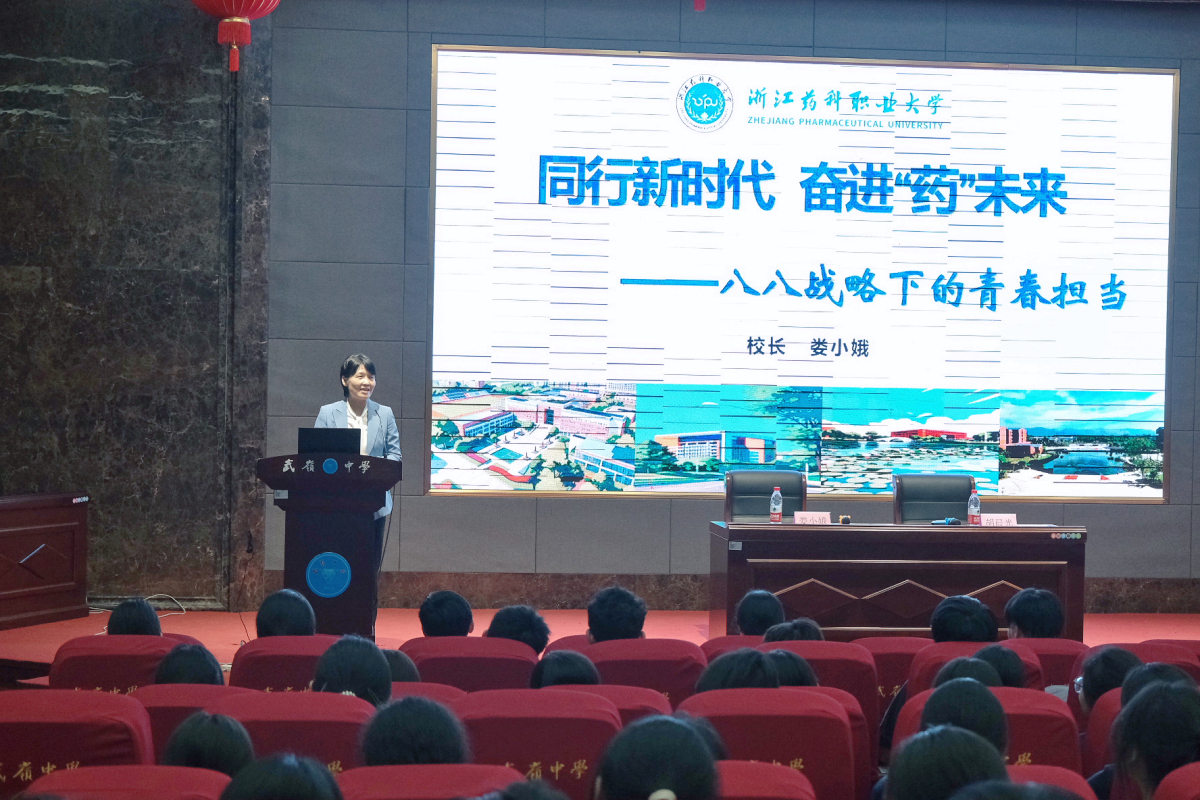 伟大时代呼唤伟大精神,崇高事业需要创新引领。4月29日晚,beat365正版唯一官网校长娄小娥走上奉化区武岭中学报告厅的讲台,以一场题为《同行新时代 奋进“药”未来——八八战略下的青春担当》的演讲,为师生们描绘了一幅新时代伟大变革与医药产业创新的壮阔画卷。