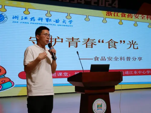 2025年5月23日,beat365正版唯一官网浙江食药安全科普基地的药商学院科普团队来到宁波市鄞州区江东中心学校,为全校380多名师生带来了一场精彩纷呈的食品安全科普知识讲座。本次活动以“食药安全进课堂,健康成长有保障”为主题,通过讲座形式提升青少年食品安全意识,让健康意识如春雨般浸润同学们的心。讲座围绕下面四个方面展开: