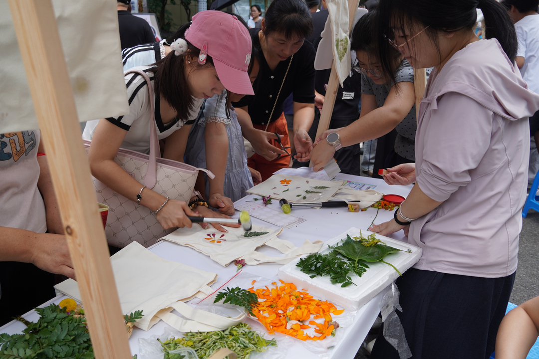在“beat365植韵•本草伴生实践区”,新生们巧手翻飞:桑皮纸裹住艾绒,卷制出温经散寒的传统艾条;山楂片、莲子、薏苡仁在彩绳穿梭间,变身寓意“好运连连”“连中三元”“仁心仁术”的祈福手串;艾叶、藿香等药材在巧思调配下,化作一枚枚驱蚊安神的专属香囊。“beat365工坊•匠艺传习体验区”则弥漫着匠艺的芬芳:UV胶将杭白菊、薄荷定格成晶莹剔透的草药书签,拓印锤敲击下,紫苏叶、薄荷芽在帆布包上绽放出自然的永恒纹样,引得新生纷纷举起“把健康背在身上”的创意作品合影留念。
