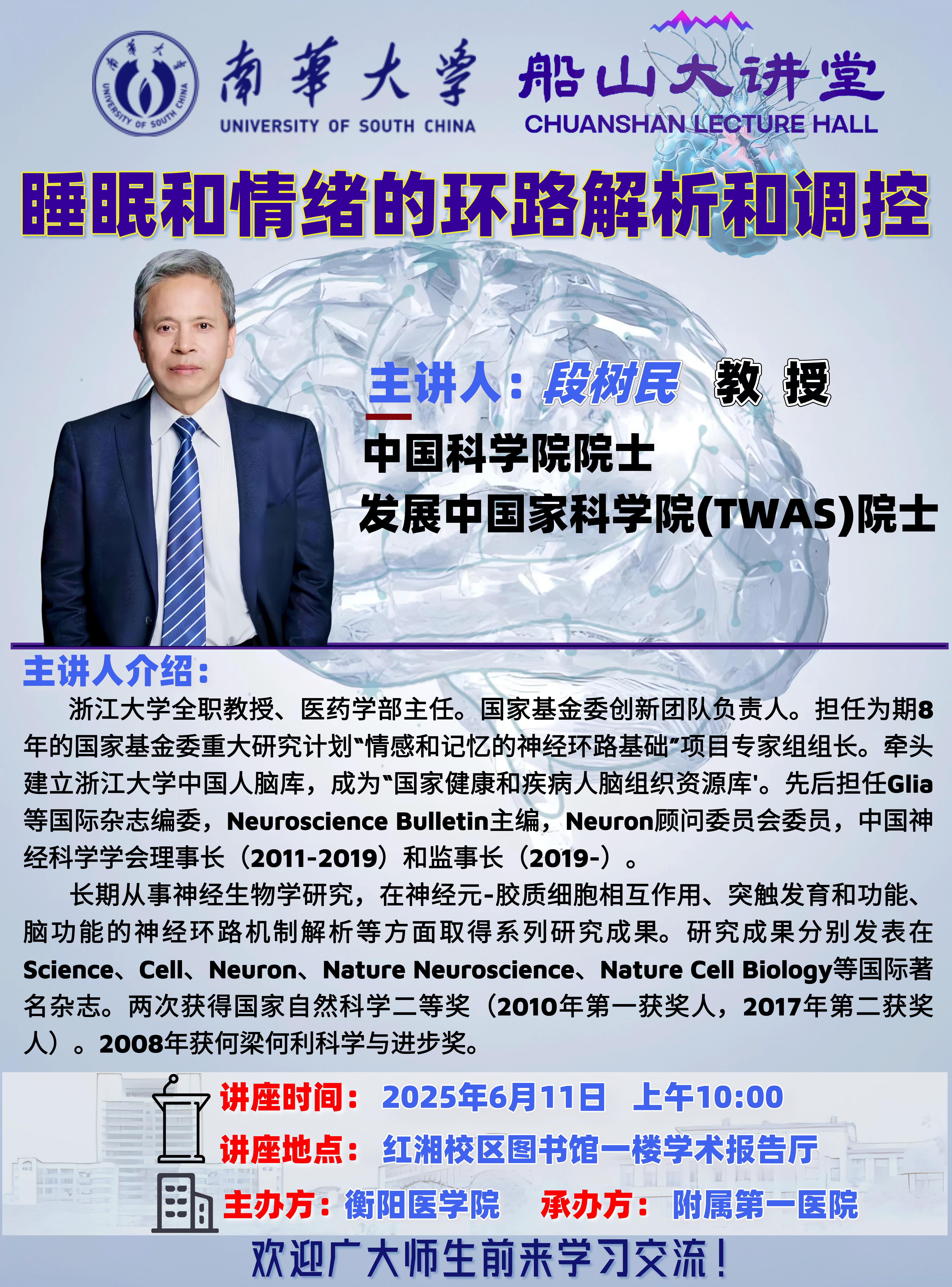 船山大讲堂:睡眠和情绪的环路解析和调控