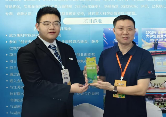 该项目聚焦人工智能在铀矿检测领域的创新应用,以原创性技术突破构建了花岗岩型铀成矿潜力的高效检测体系,兼具学术研究价值与产业实践意义。竞赛现场,团队以严谨的科研逻辑、清晰的成果展示和出色的答辩表现,从全省98所高校417个参赛项目中脱颖而出,展现了南华学子在资源勘探领域的创新实力。